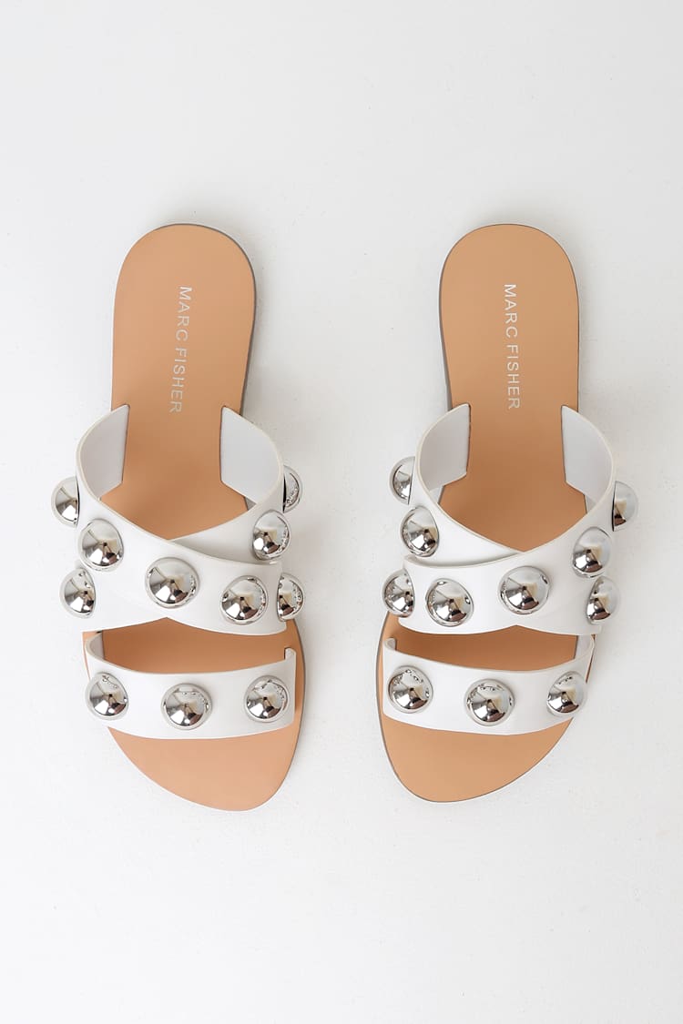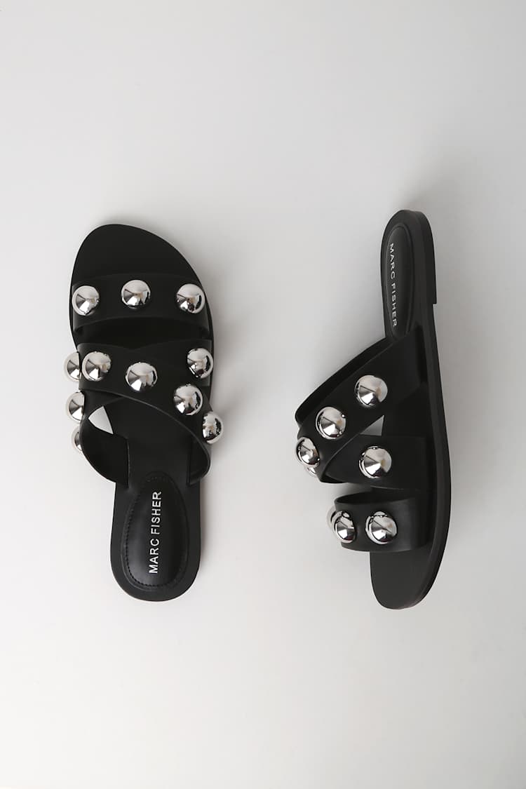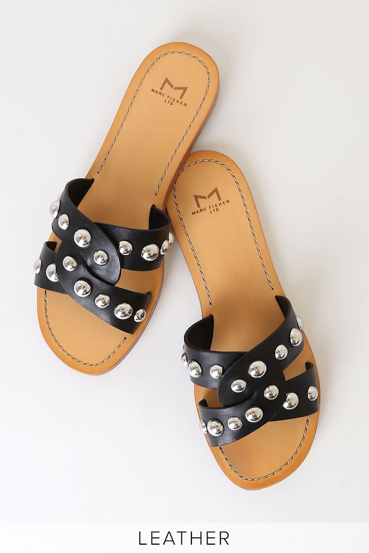 Marc fisher slides with studs. Step your shoe game up with the Marc Fisher Jaylin Yellow Leather Studded Slide Sandals. Alida Espadrille Wedge Sandal. Very comfortable have other colors Similar to the Valentino once Very stylish Looks great on foot.