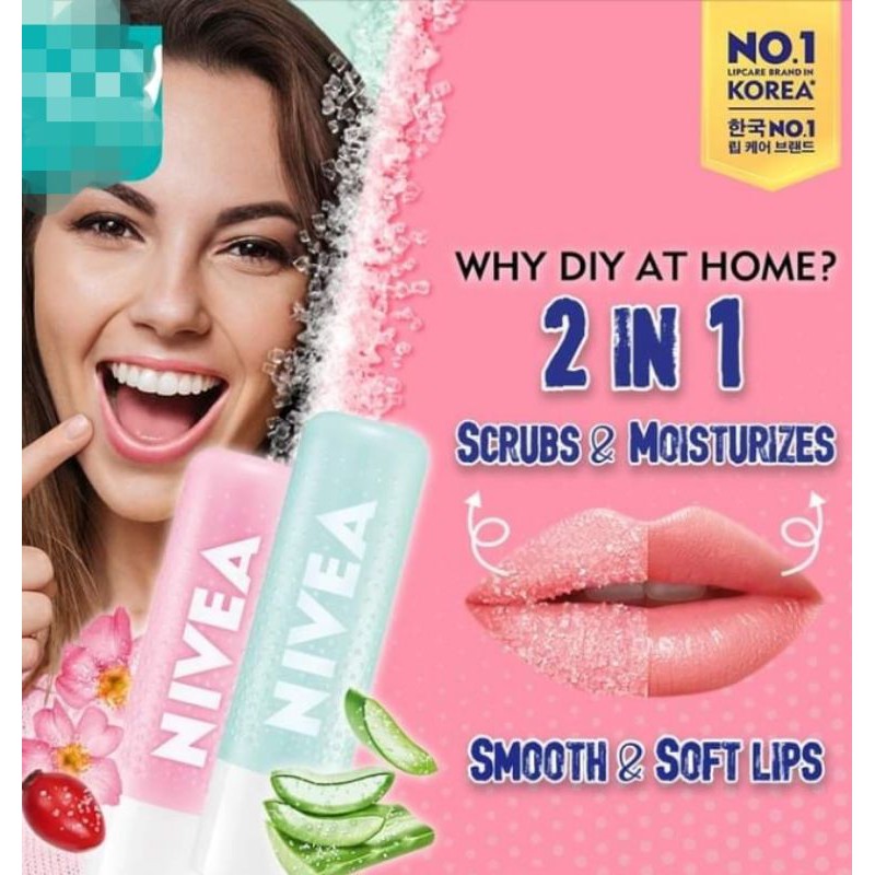 1 Before you use. This can be a DIY lip scrub or if you dont have the time to make your own have a look at NIVEA 2 in 1 Caring Scrub with Aloe Vera. However over exfoliation may lead to sensitive lips.