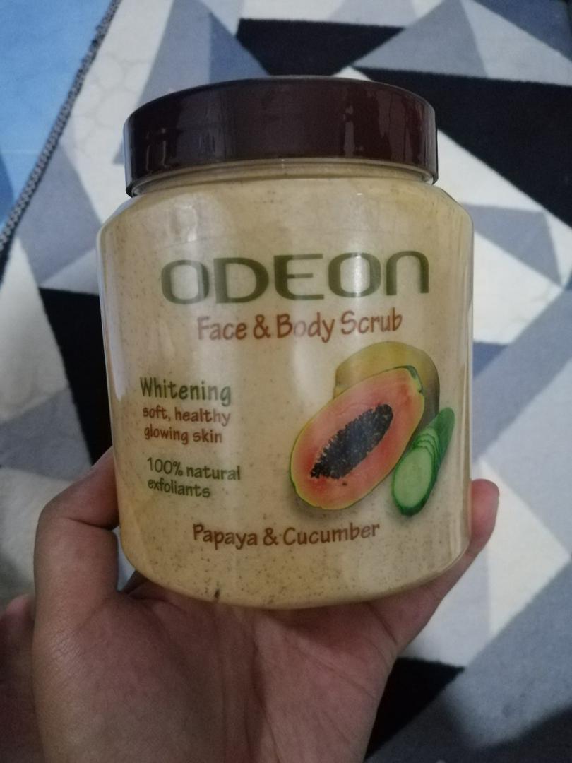 ODEON Face and Body Scrub For Natural Nourishment. Rinse off the scrub and pat dry. This odeon scrub its not any che. This odeon face and body scrub will give a good results for your skin. Prevents skin from dryness wrinkles. With wet fingers and palm rub your face and body in a circular motion. Exfoliate your gentle skin to. Odeon_scrub_risha Natural skin care uses topical herbals made of ingredients available to nature. Revitalise your skin with the goodness of 100 natural exfoliants.